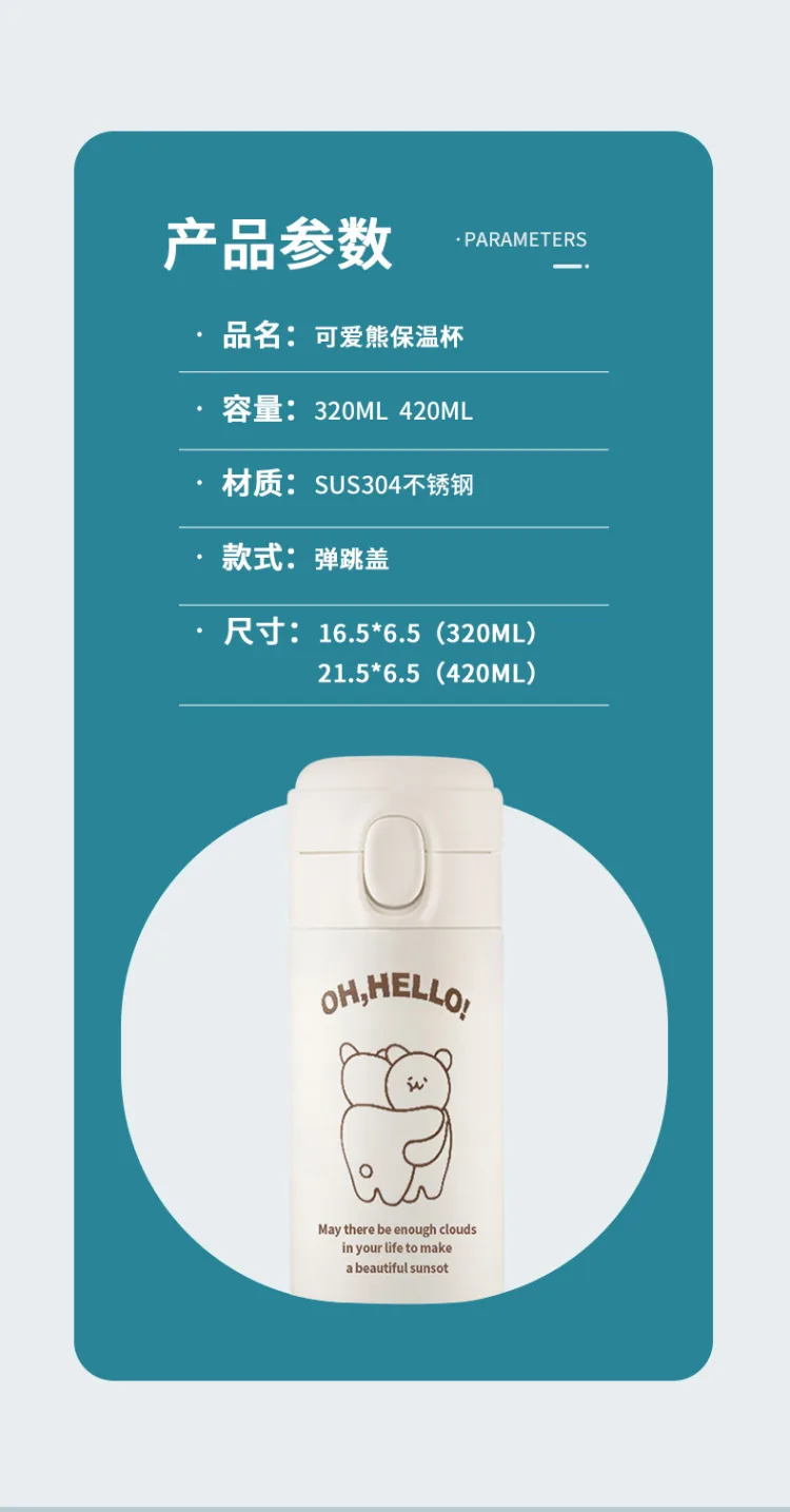 5分鐘前网红卡通豌豆保温杯304不锈钢水杯户外便携弹跳盖杯子学生杯 - 特惠一入組